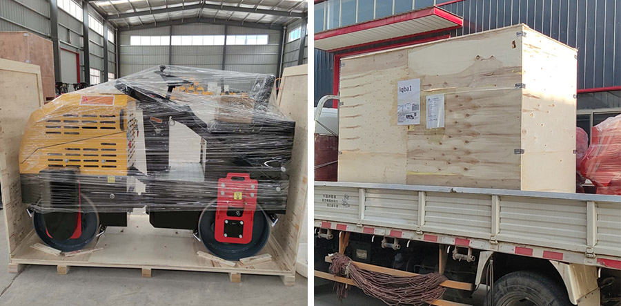 8.17日,一臺1.5噸全液壓雙驅壓路機正在海拓機械工業(yè)園里打包裝箱,即將發(fā)往大洋彼岸的澳大利亞.