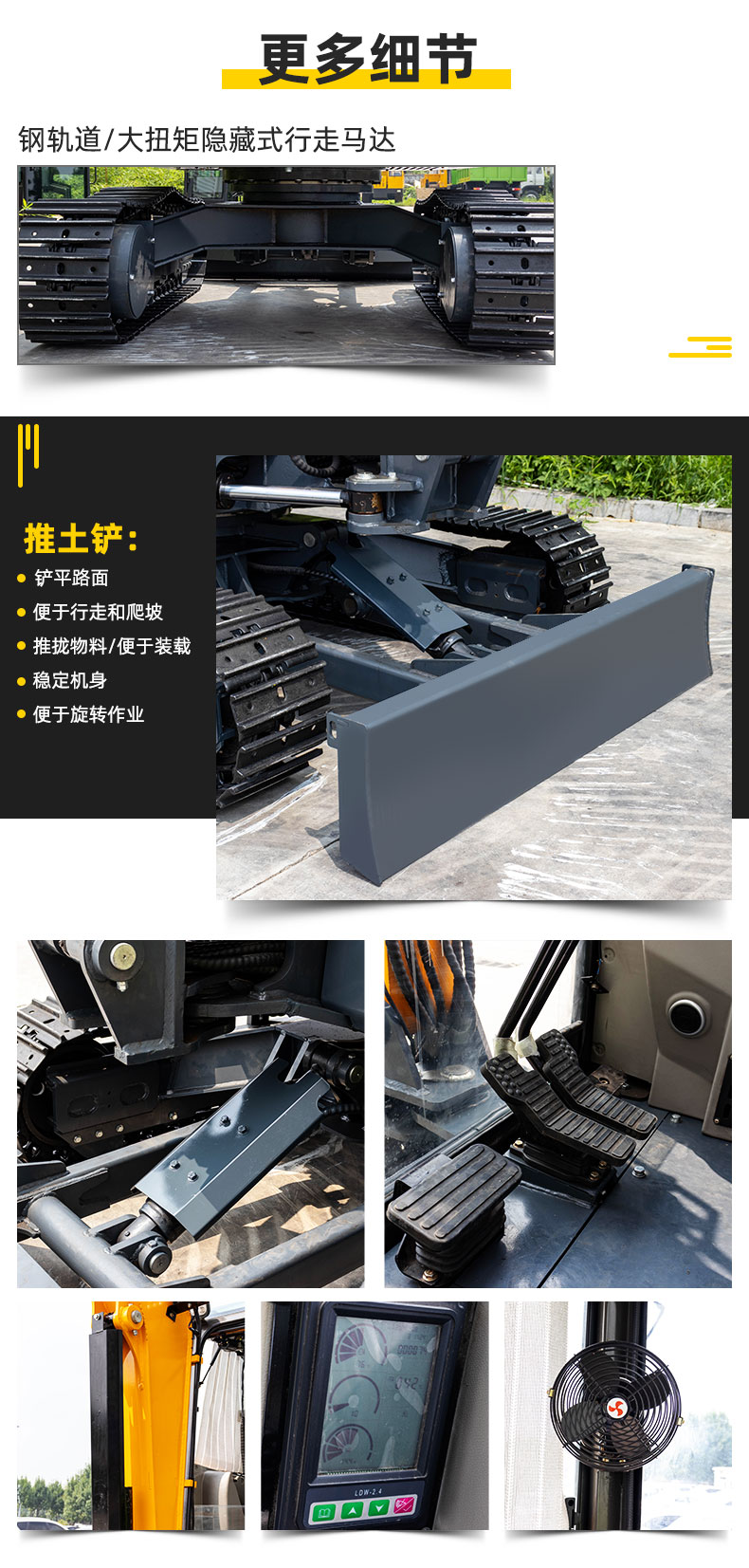 3.5噸挖掘機(jī)具有履帶式和輪式兩種,可靠且易于使用。該挖掘機(jī)具有挖掘,抓取,鉆探,推土,清溝,破石等多種功能,可廣泛用于供水,供電,供氣,供氣,電信網(wǎng),農(nóng)田和園林工程等各種建設(shè)項(xiàng)目。