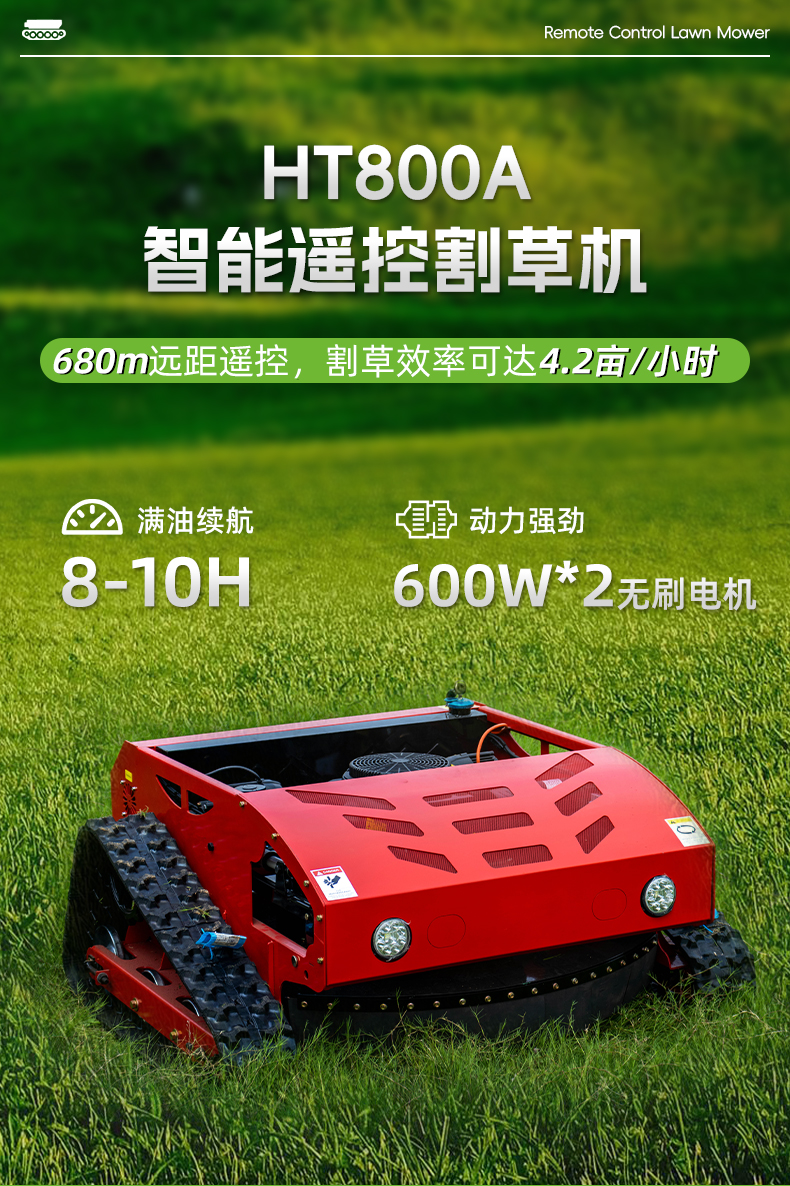 HT800A遙控割草機(jī)680m遠(yuǎn)距遙控,割草效率可達(dá)4.2畝/小時