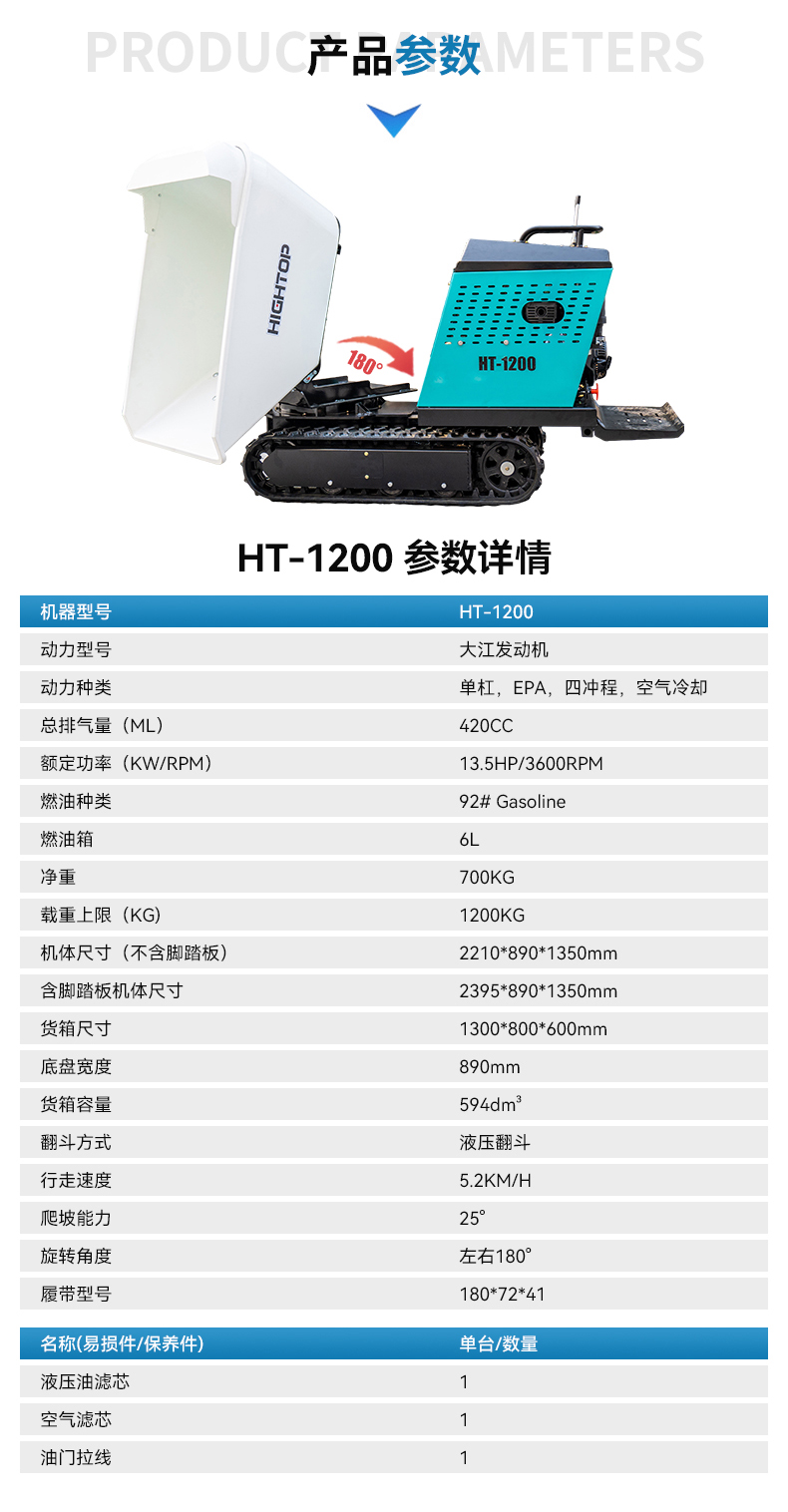 | 1200履帶旋轉(zhuǎn)翻斗車產(chǎn)品參數(shù) | |